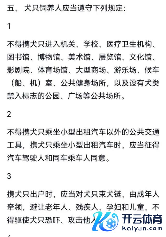 章贡区属于赣州市中心城区,记者刺目到,2019年9月3日,赣州市公安局、赣州市城市处理局、赣州市农业农村局、 赣州市商场监督处理局、赣州市卫生健康委员会五部门长入下发《赣州市中心城区犬类处理秘书(试行)》。秘书提到,犬只饲养东谈主不得携犬只干预行家健身步地;携犬只出户时,应当对犬只束犬链。