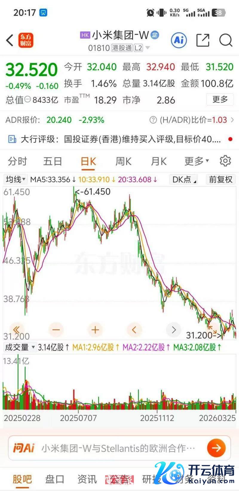 尽管 2025 年财报合座亮眼,但小米的股价并莫得因此高潮,反而连接下落。