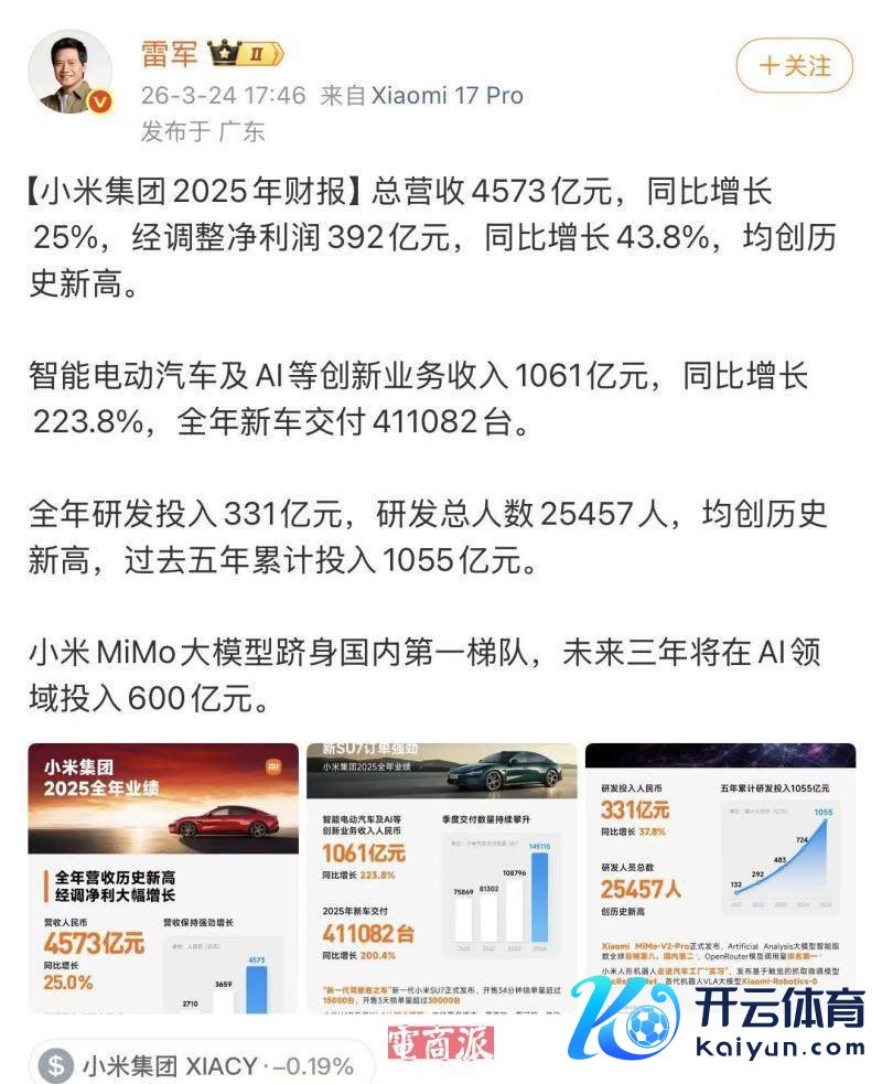 淌若说手机是小米的昔时,承载着小米的创业初心和成长挂念;那么汽车等于小米的当前,是撑握小米营收增长、已矣盈利摧毁的中枢力量;而AI则是小米的改日,是决定小米能否在改日科技竞争中占据上风的要害。