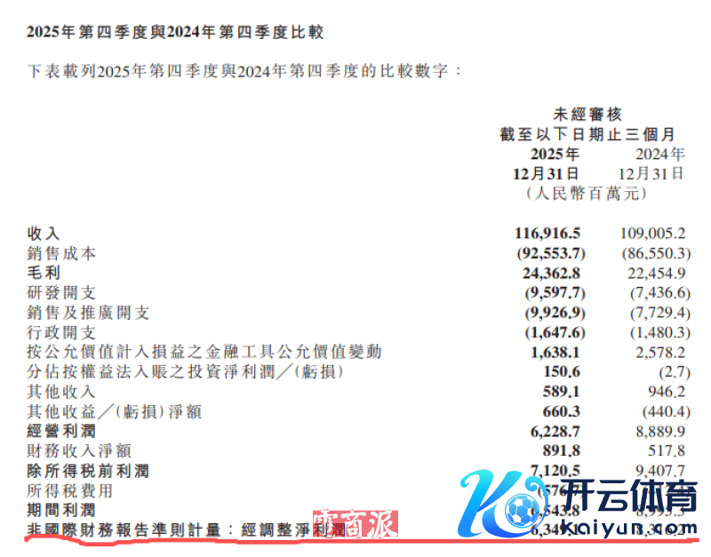 2025年Q4,小米经一样净利润为63.5亿元。这个数字,同比2024年Q4的83亿元,下滑显著;环比2025年Q3的113亿元,跌幅更大。这是2025年全年中,惟逐个个经一样利润环比下降的季度,也驱逐了此前一语气三个季度更动高的轨迹。