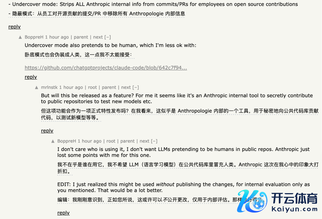 卧底模式(Undercover mode),向开源代码的提交PR时,移除系数Anthropic的信息。