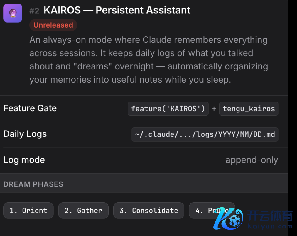 代号Kairos,一个抓久化助手模式,让Claude领有跨会话的恒久系念。